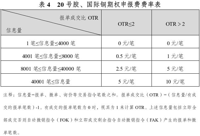 20号胶、国际铜期权对客户信息量收取申报费,具体如下表所示。